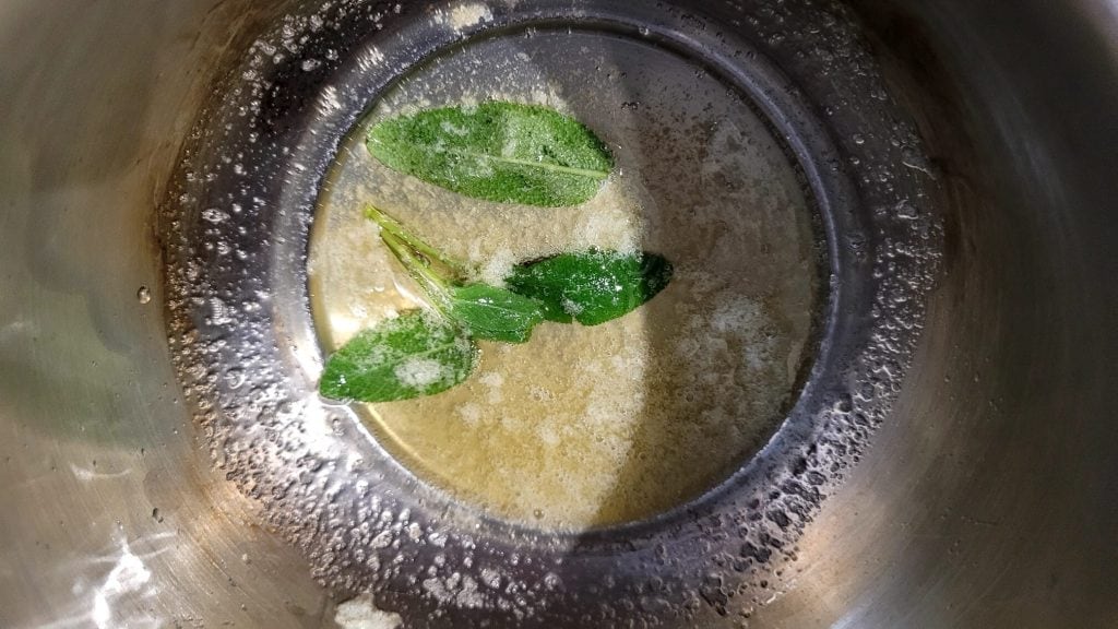 • Entre-temps, dans une petite casserole, faites fondre 25 g de beurre avec la sauge (facultatif)