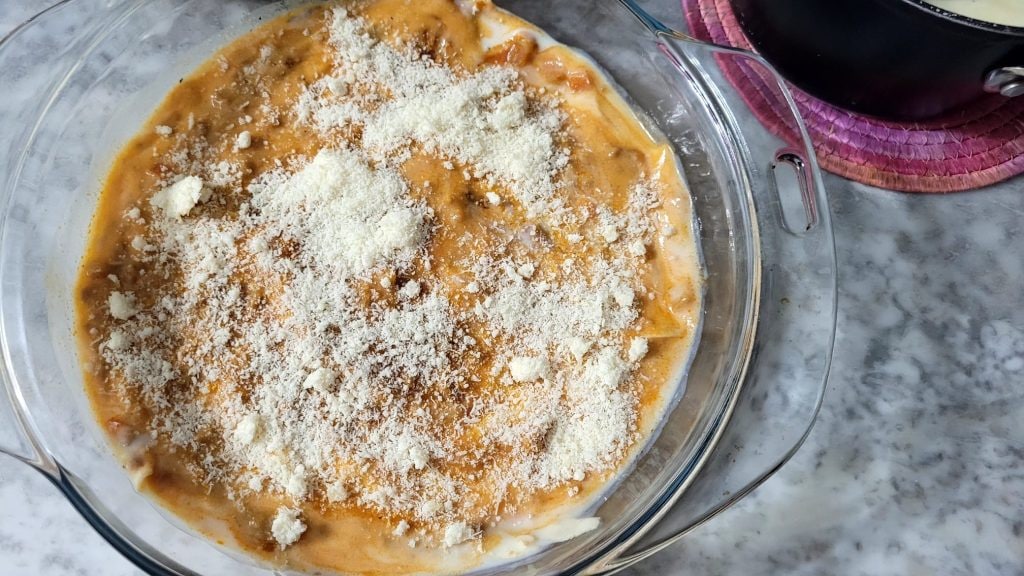 Saupoudrez toutes les couches avec abondamment de parmesan râpé