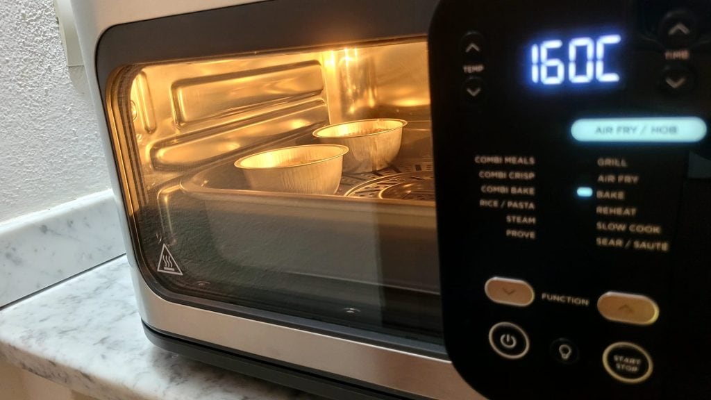 Préchauffez la friteuse à air pendant 2/3 minutes et faites cuire sur la grille ou sur le plateau air fry à 160° x 20 minutes, faites le test du cure-dent pour vérifier la cuisson