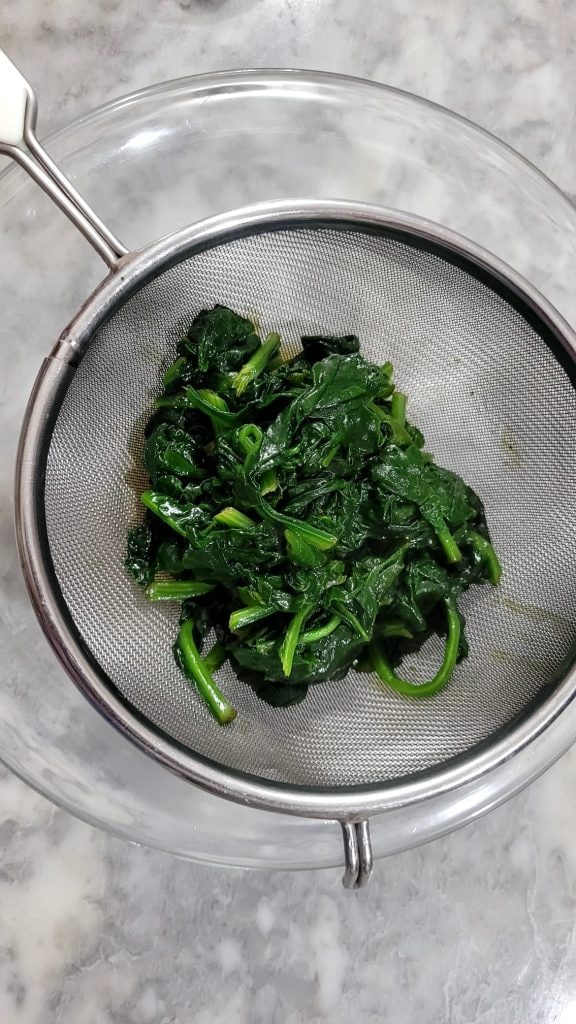 Si vous utilisez des épinards surgelés, assurez-vous de bien les décongeler et de les presser très bien pour éviter qu’ils ne libèrent trop d’eau pendant la cuisson.