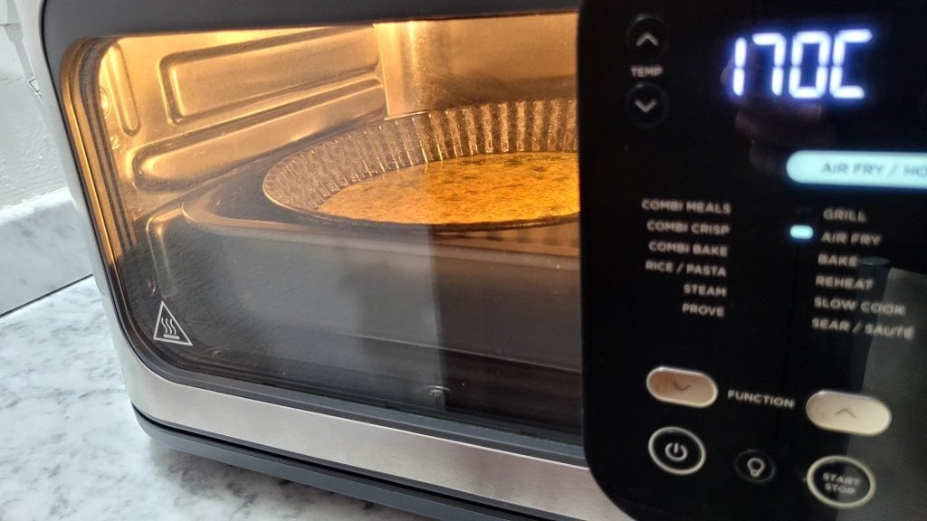 Pour la préparation, vous devrez diviser les ingrédients en 2 bols et commencer la cuisson de la base avec la moitié du mélange, la farcir ensuite et couvrir avec les œufs restants. Cela permet de maintenir la farce plus en surface et est utile pour ceux qui ont une friteuse avec une seule résistance, de cette façon vous obtiendrez une cuisson homogène, à la fois en dessous et au-dessus, sans avoir besoin de la retourner. Le choix du moule est également important, évitez le silicone et les moules en aluminium jetables, qui maintiendraient le mélange très humide et difficile à cuire, préférez un moule antiadhésif.
