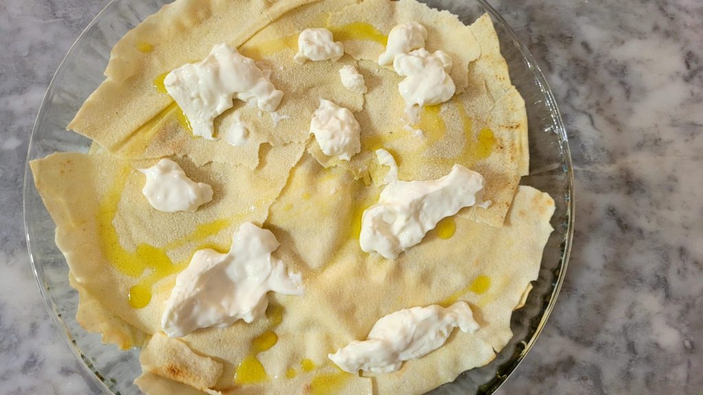 Prenez les feuilles de pain carasau et mouillez-les rapidement avec de l’eau pour les ramollir