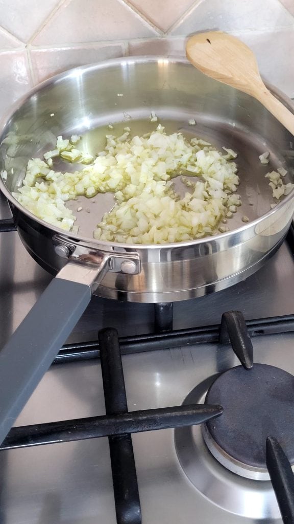 Hachez finement l’oignon et faites-le mijoter dans une casserole avec un bon filet d’huile d’olive