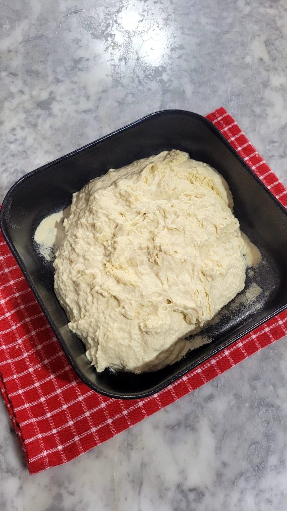 À la fin, la pâte doit être gonflée. Si l’environnement est froid, vous pouvez laisser lever la pâte dans le four éteint avec la lumière allumée. Ainsi, une température légèrement plus chaude et constante sera créée, idéale pour favoriser la levée sans variations.