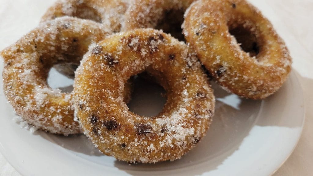 Les Petits Donuts à la Ricotta et Pépites de Chocolat sont une variante des beignets de Carnaval frits à la poêle avec de l’huile. J’ai adapté cette recette pour la cuisson dans une friteuse à air, beaucoup plus légère, obtenant une pâte moelleuse et délicieuse, qui vous séduira dès la première bouchée. Prêts en quelques minutes car ils ne nécessitent pas de repos pour la levée et sans sucre dans la pâte, seulement pour les recouvrir une fois prêts. Je les ai enrichis avec des pépites de chocolat noir pour les rendre encore plus savoureux, mais ils sont également délicieux sans… C’est à vous de décider comment les préparer. Essayez aussi la recette des Petits Donuts Frits en Friteuse à Air sans ricotta ou dans la version salée Petits Donuts Salés en Friteuse à Air parfaits comme apéritif.