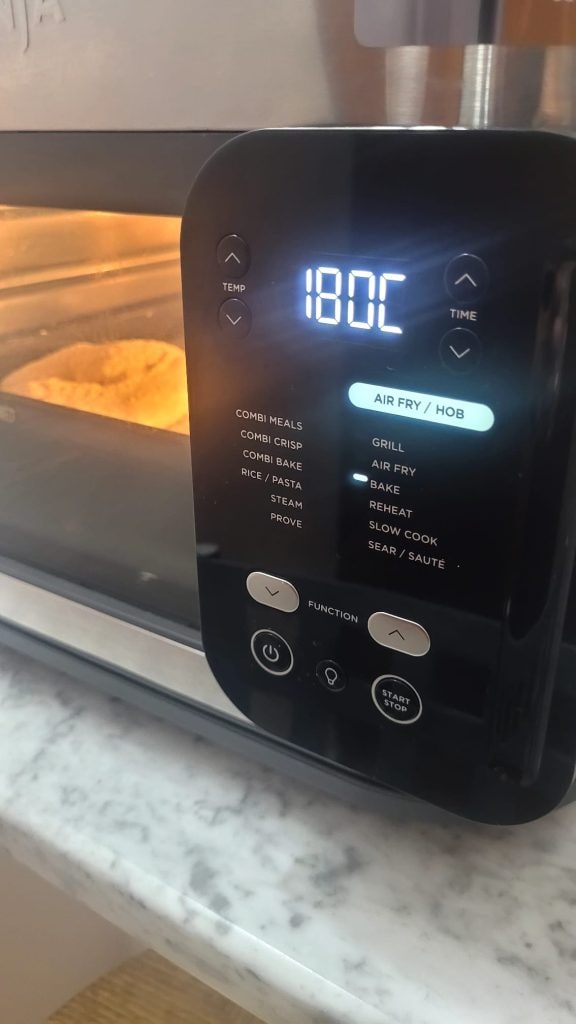 • Préchauffez la friteuse à air à 180° pendant 2/3 minutes en mode bake ou air fry. Une fois le préchauffage terminé, insérez le plateau et lancez la cuisson toujours à 180° pendant 25 minutes
