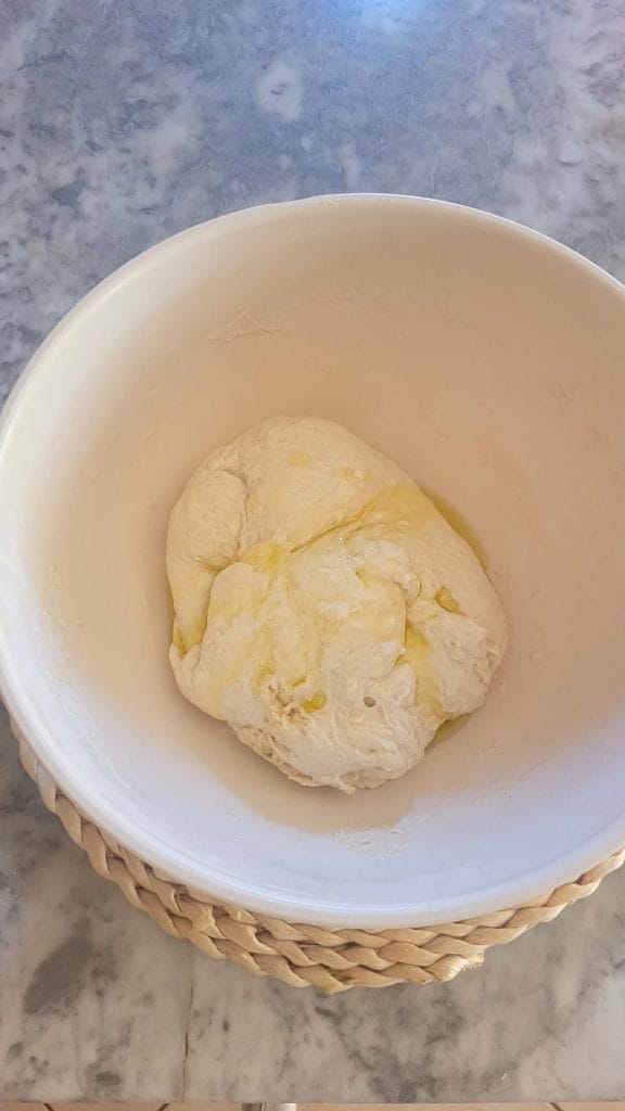 • Versez le reste de l’huile d’olive et mélangez jusqu’à ce que la pâte se décolle des bords du bol. Vous devez obtenir une pâte molle, si elle vous semble trop compacte et dure, ajoutez de l’eau un peu à la fois jusqu’à atteindre la bonne consistance