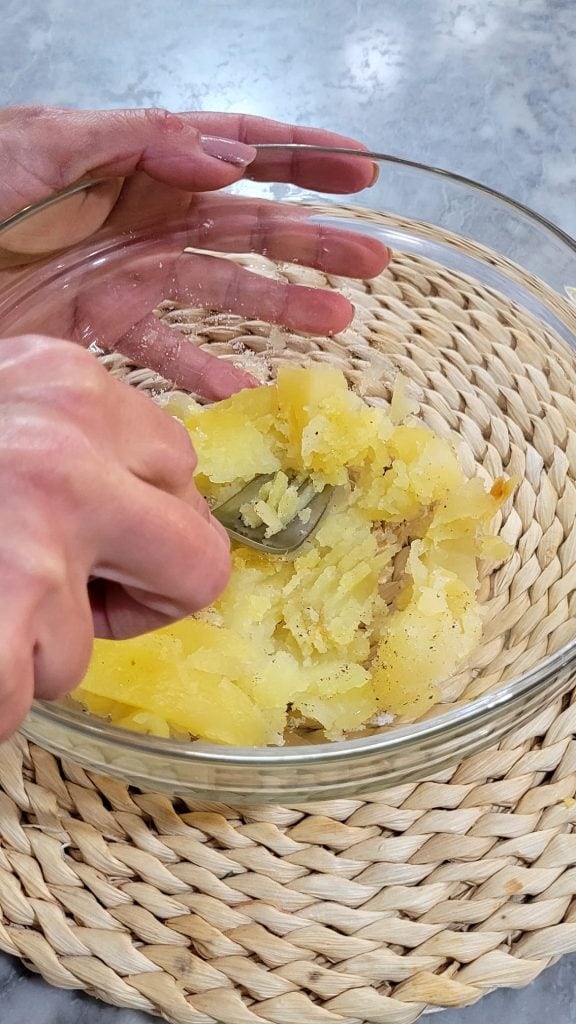 Passez à la préparation de la garniture : écrasez la chair avec l’aide d’une fourchette