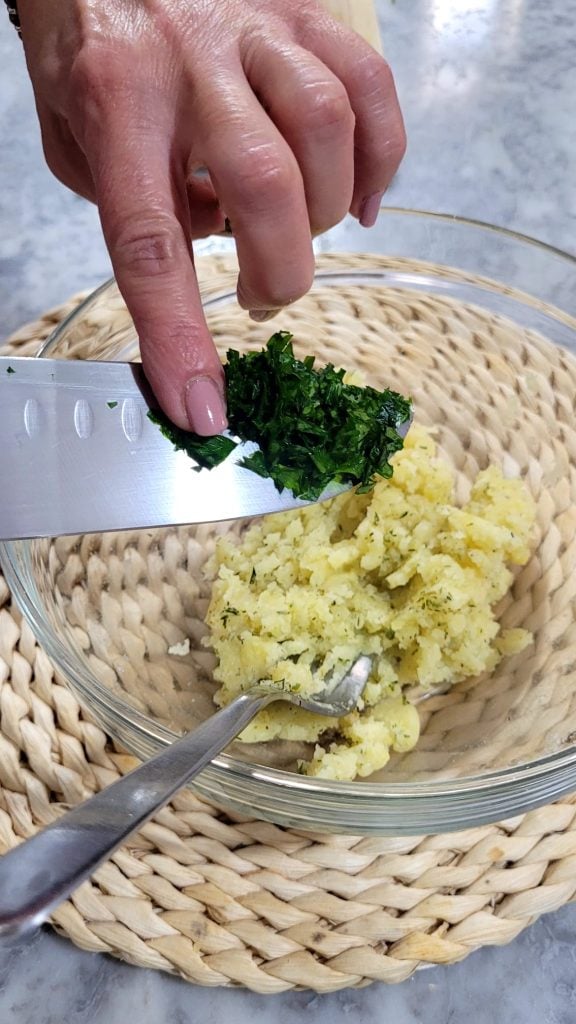 Ajoutez, sel, poivre, grana râpé, mélangez et ajoutez aussi le persil haché, gardez un peu de côté pour la finition