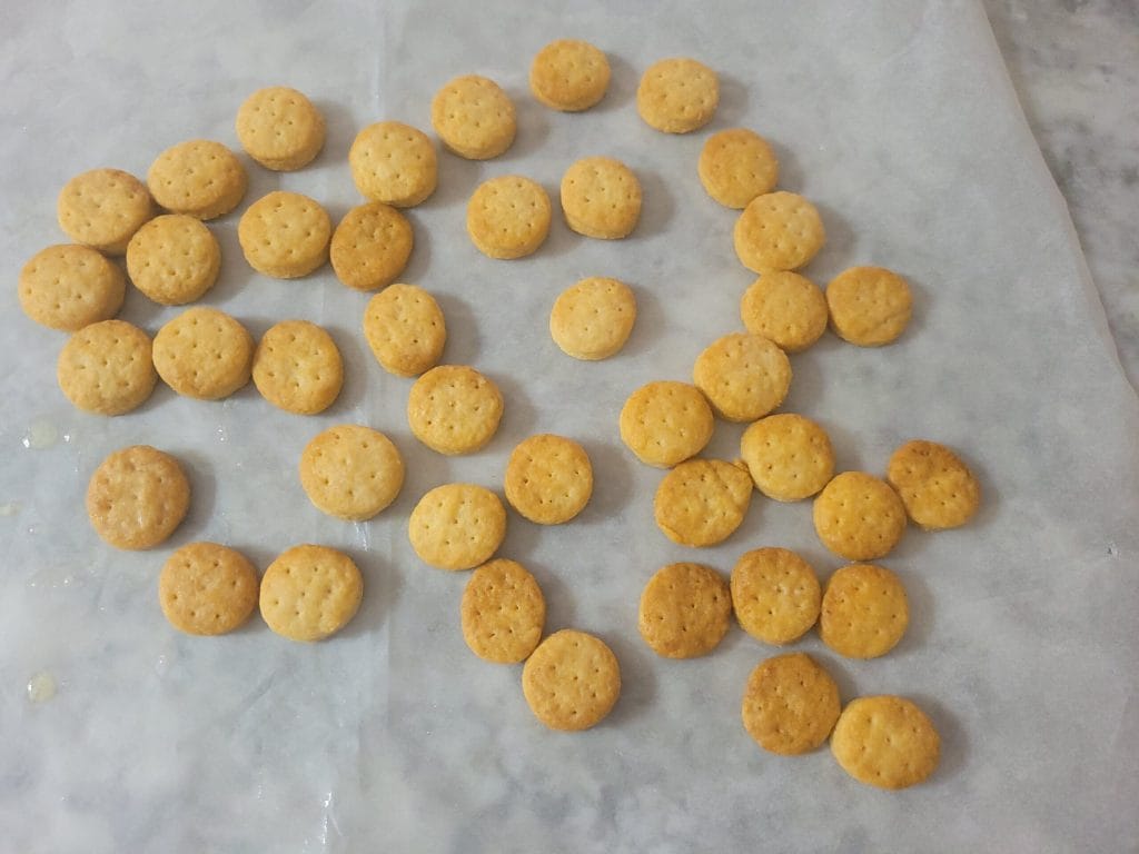 Dès qu’ils sont prêts, badigeonnez la surface des Ritz avec le beurre salé.