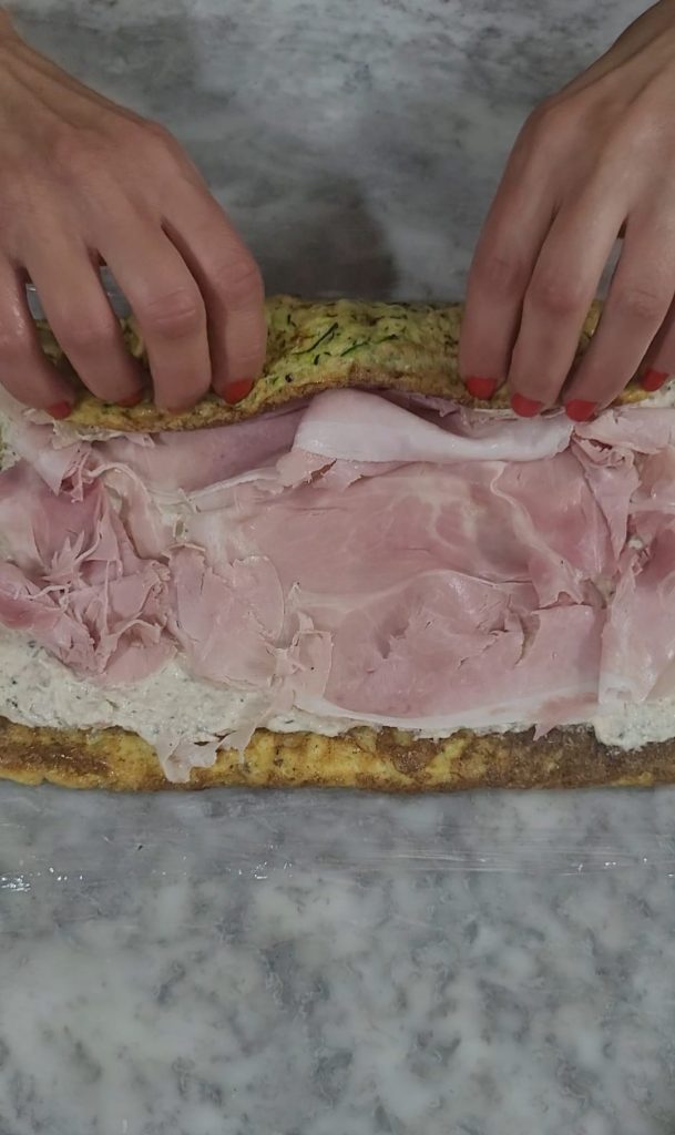 Pour préparer le roulé d’omelette aux courgettes, la seule cuisson prévue dans ma recette est celle de l’omelette, tandis que la garniture consiste en une couche de crème à base de fromage, thon, parmesan et quelques tranches de jambon cuit. Très facile à préparer, le roulé d’omelette aux courgettes dans une friteuse à air est bon et frais, à consommer donc froid, pratique à transporter pour une sortie, à la plage ou à consommer au bureau pendant la pause déjeuner. Une fois refroidi, on le garnit, on le roule et on le met au réfrigérateur avant de le trancher et le tour est joué.