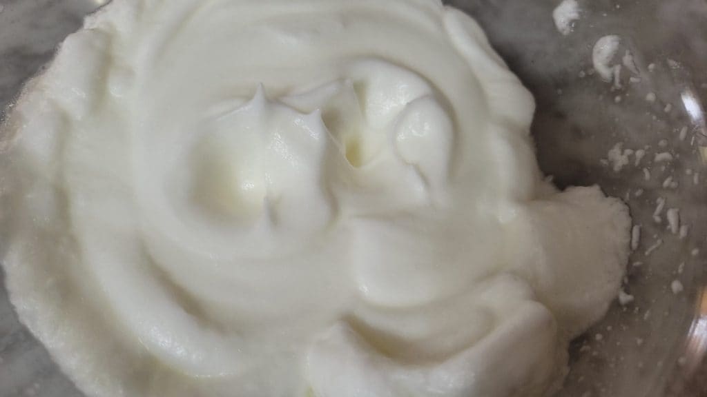Entre-temps, préparer la crème en montant la crème fraîche froide du frigo, ajouter le mascarpone, le café, le sucre glace et bien mélanger.