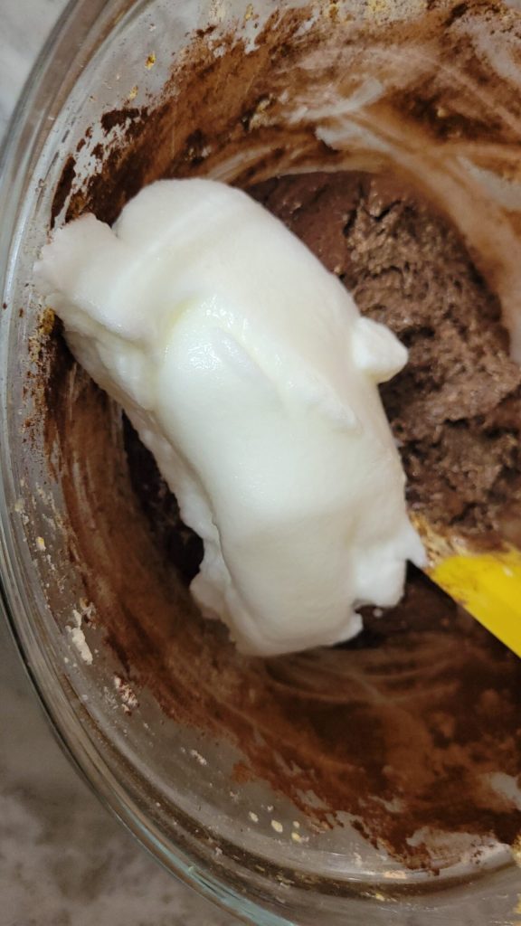 Incorporer les blancs d’œufs petit à petit en mélangeant de bas en haut sans casser le mélange.