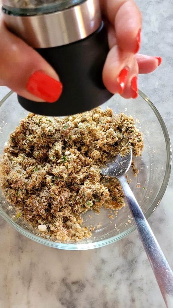 Ajoutez maintenant les 2 cuillères à soupe de grana padano râpé et de chapelure