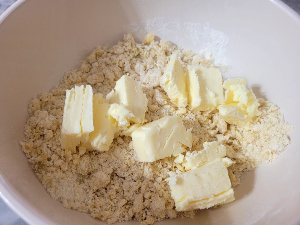 Ajouter le beurre coupé en dés et mélanger rapidement jusqu’à obtenir une pâte lisse et homogène