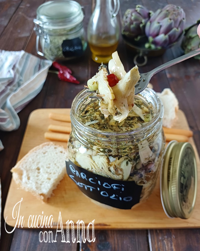 Les artichauts à l’huile sont un délicieux accompagnement parfait dégusté avec du pain rustique, pour accompagner fromages et charcuteries ou plats de viande et saucisse, excellents pour garnir des sandwichs, des piadines ou des saltimbocca, mais aussi comme antipasto, ils sont très appréciés. Essayez-les et vous verrez comme ils sont bons 🙂