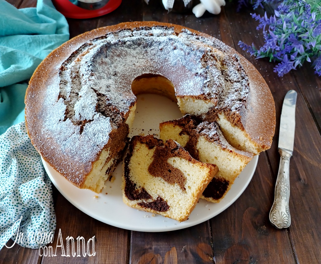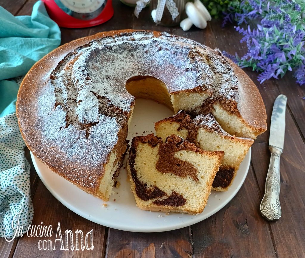 Ajoutez à une partie de la pâte le cacao tamisé et 2 cuillères à soupe d’eau (ou de lait), mélangez avec une spatule jusqu’à homogénéité.À ce stade, versez la pâte au cacao sur celle blanche.