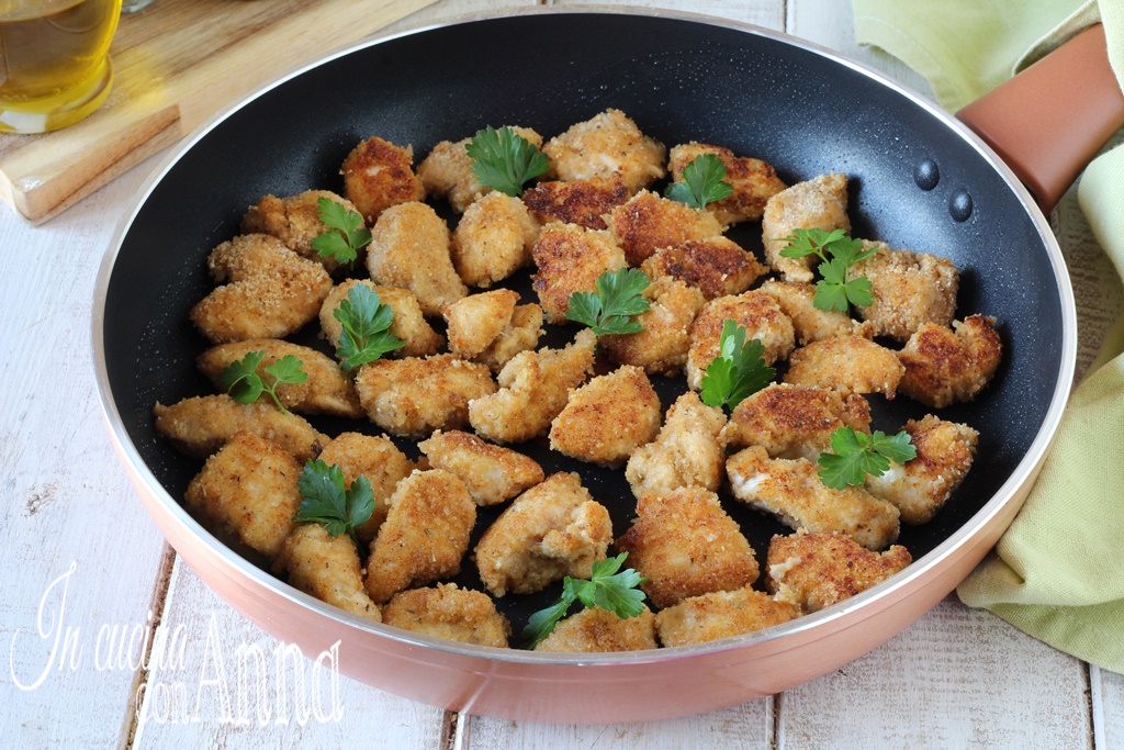 Les morceaux de dinde panés à la poêle sont un plat très simple à préparer, amusant et savoureux, de petits morceaux de dinde tendres à l’intérieur et très croquants à l’extérieur, grâce à une panure aromatique et délicieuse, un plat principal prêt en un rien de temps qui séduira tout le monde dès la première bouchée.