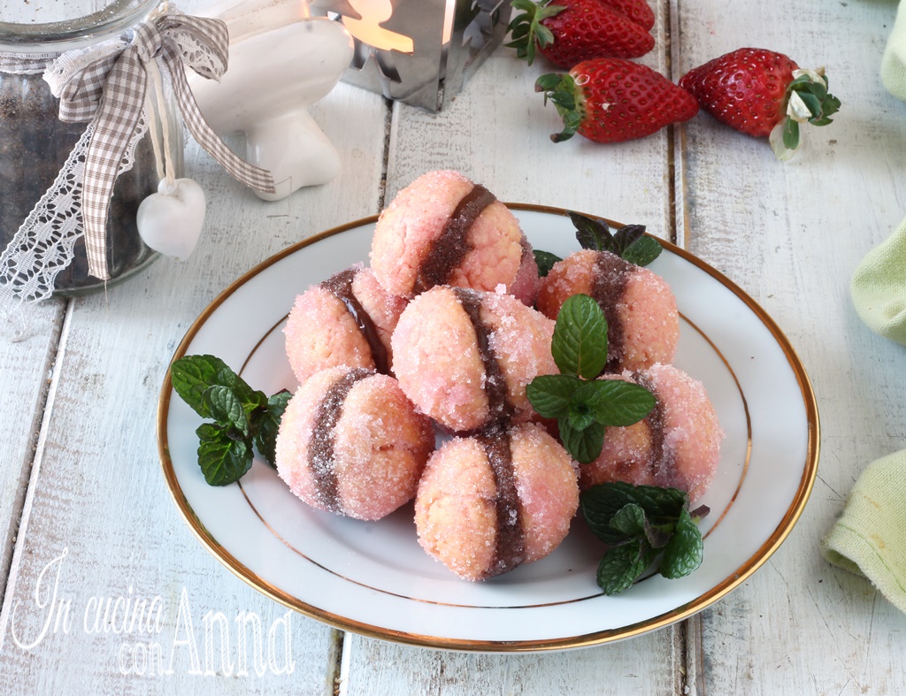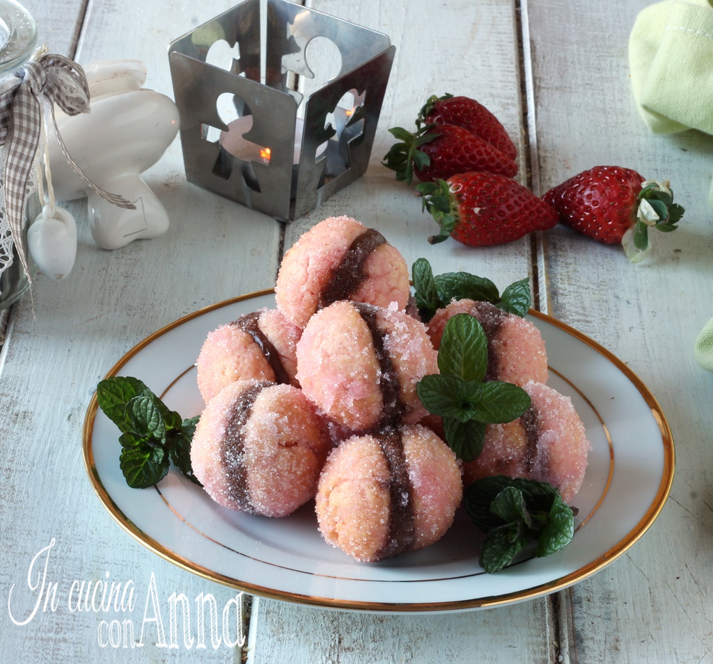 Une coque formée de deux biscuits fourrés d’une délicieuse crème aux noisettes, mais vous pouvez aussi utiliser de la crème pâtissière, de la crème au chocolat, de la confiture ou une crème à tartiner de votre choix, un sirop alcoolisé d’alchermes et une légère couverture de sucre créent ces petites douceurs très gourmandes 🙂 essayez-les, elles sont parfaites aussi comme cadeau, à servir lors d’un buffet, comme dessert après le repas, et pour vous régaler chaque fois que vous voulez quelque chose de bon 🙂