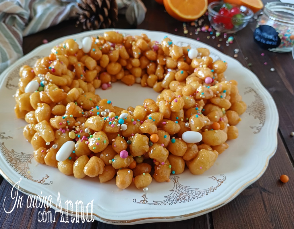 La Pignolata calabraise est un gâteau très gourmand préparé pendant les fêtes de Noël et de Carnaval, un gâteau typique traditionnel très simple à préparer, beau à voir et délicieux à déguster.