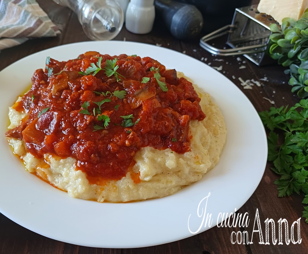 • Dès que la sauce est prête, nous pouvons préparer la polenta.