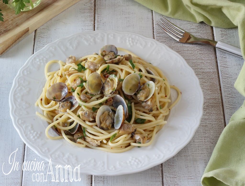 Voici les spaghetti alle vongole, un de ces plats très simples à préparer, rapides et d’une bonté stratosphérique, un plat parfait en toutes occasions et qui conquiert toujours tout le monde à la première bouchée. Aujourd’hui, je vous explique comment bien les préparer (la recette est celle de l’école hôtelière) pour avoir chez vous un plat parfait, crémeux, qui sent la mer, un plat comme ceux que vous mangeriez dans un restaurant étoilé de bord de mer 🙂 alors, tout le monde en cuisine, aujourd’hui nous préparons le roi des premiers plats de mer, et nous le faisons comme il se doit 😉