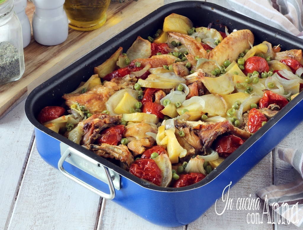 La tiella de poulet napolitaine (ruoto napolitain) a toujours été le plat principal du dimanche dans la maison de nos grands-parents, un plat principal simple à préparer, riche et extrêmement savoureux. Tout cuit ensemble et en une heure, vous aurez un plat principal avec accompagnement qui rendra toute la famille heureuse.