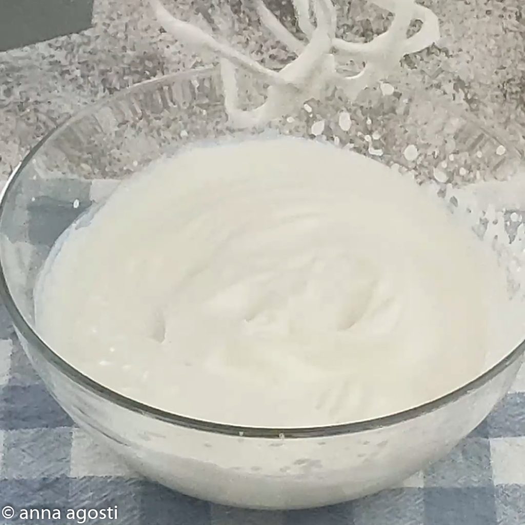 Montez la crème avec les fouets électriques, si vous utilisez la crème fraîche liquide, ajoutez le sucre glace.