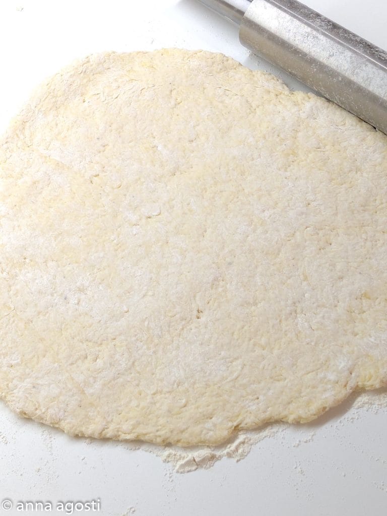 4- Étalez avec le rouleau à pâtisserie à une épaisseur de 1 cm.