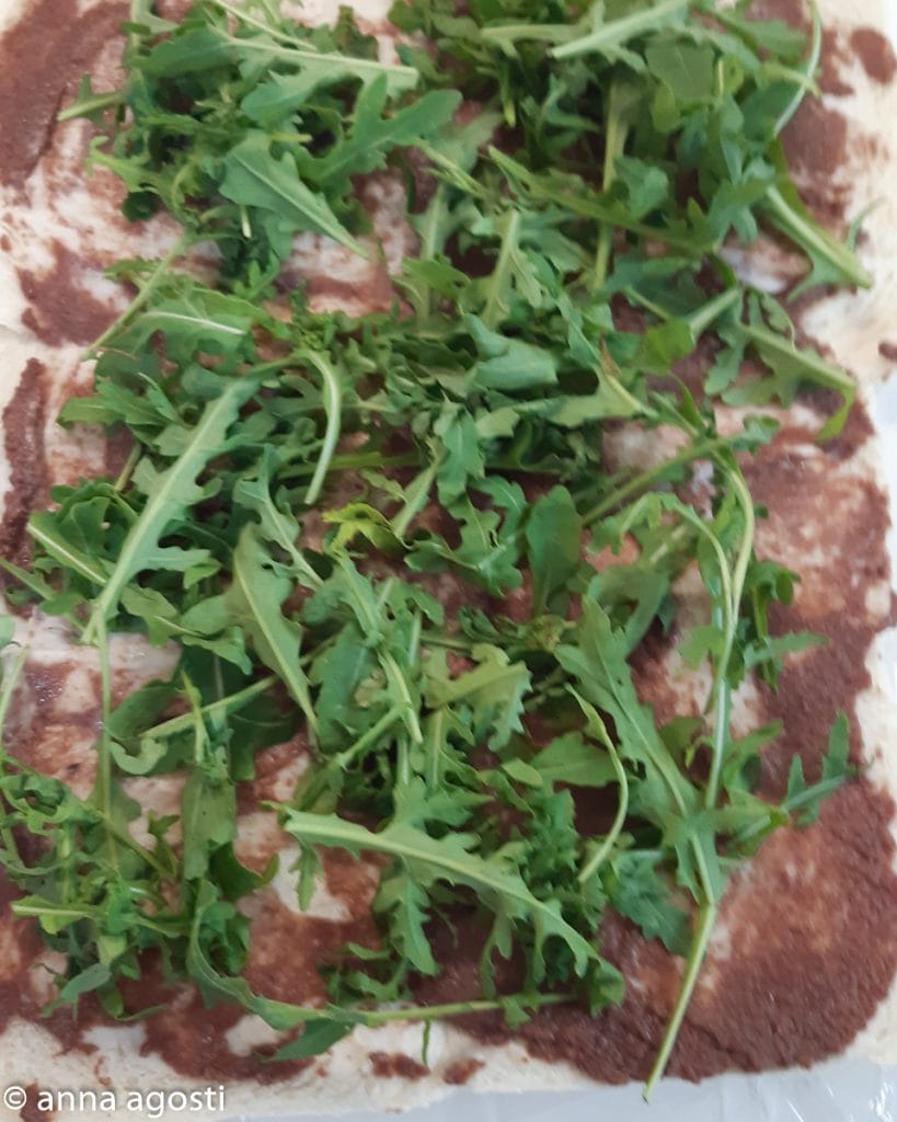 Le Sandwich roulé roquette et olives, vous pouvez l’enrichir encore avec du thon à l’huile égoutté, avec des tomates cerises coupées en morceaux ou encore ajouter du pâté de tomates séchées.
