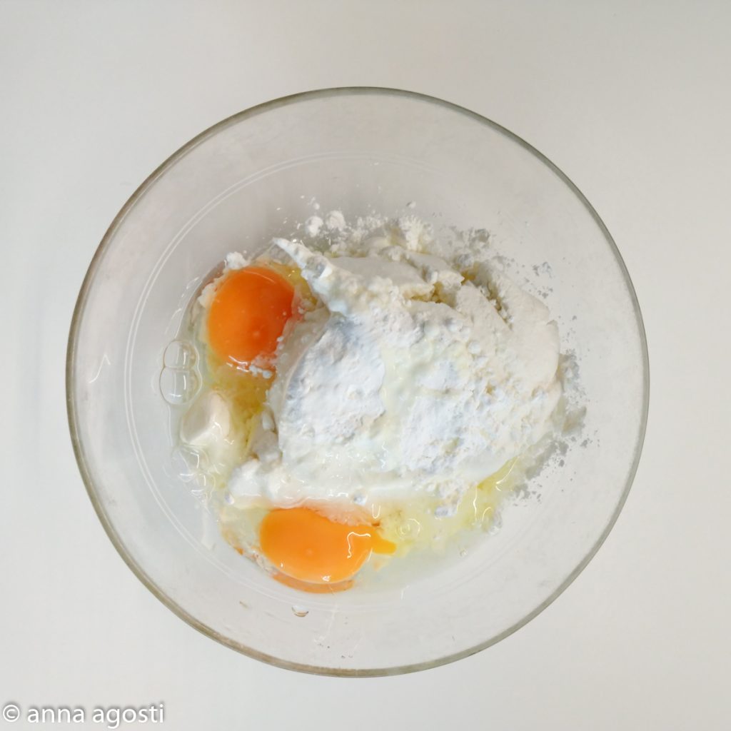 Renversez le mélange sur le plan de travail et travaillez-le très rapidement pour former une boule lisse et compacte, enveloppez dans du film plastique et faites reposer au réfrigérateur pendant au moins 30 minutes.Entre-temps, dans un saladier mélangez la ricotta avec l’amidon de maïs et le sucre.