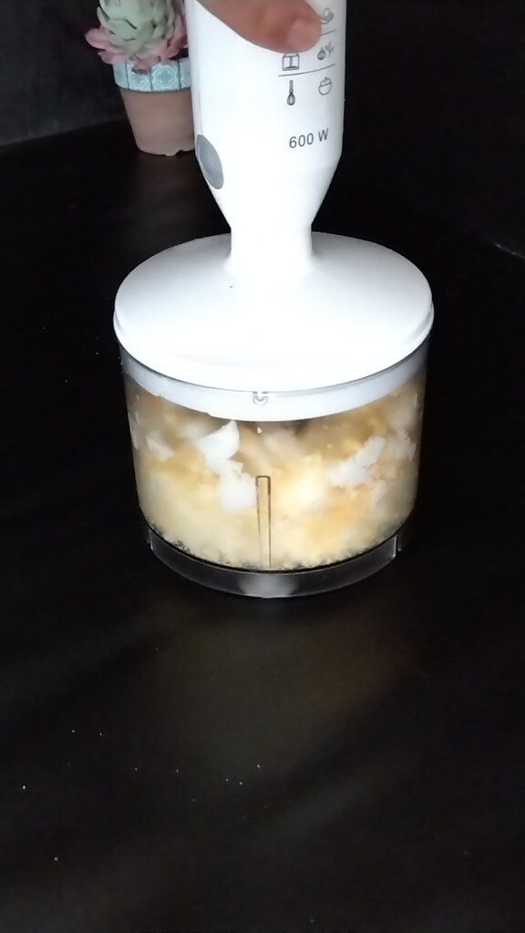Entre-temps, hachez finement les œufs durs à l’aide d’un mixeur et mettez-les dans un bol.
