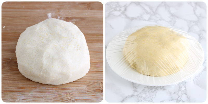 Dès que les ingrédients sont bien mélangés, formez une boule compacte et mettez-la à reposer au réfrigérateur pendant 30 minutes, couverte de film transparent de cuisine.