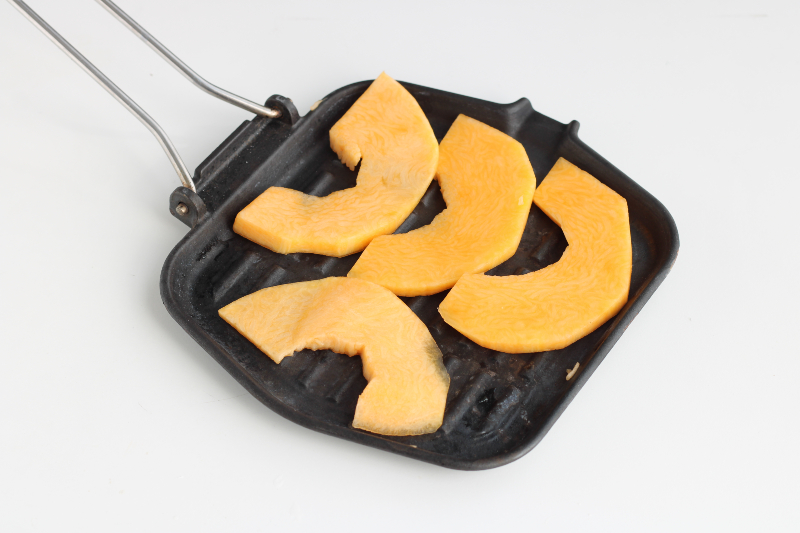 Pour préparer la citrouille grillée, il vous faudra une poêle à griller ou une plaque en fonte (je la préfère!). Une cuisson simple et légère qui rend la citrouille savoureuse, un excellent accompagnement d’automne à assaisonner à votre goût avec des herbes aromatiques, du piment et de l’ail frais.