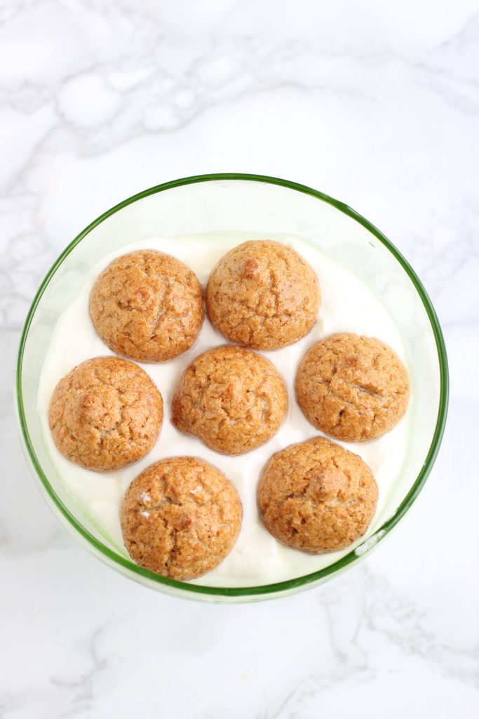 Recouvrez avec le mélange de crème et yaourt et nivelez toute la surface avec une spatule.