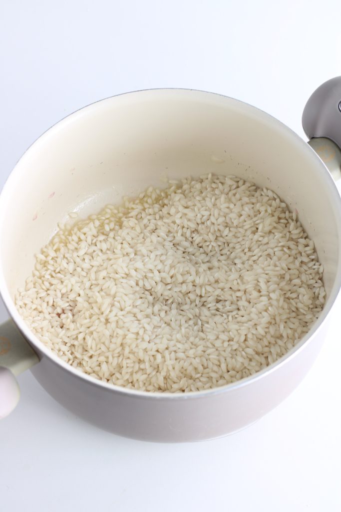 Si vous souhaitez éviter d’utiliser du vin blanc, vous pouvez cuire le riz uniquement avec le bouillon.
