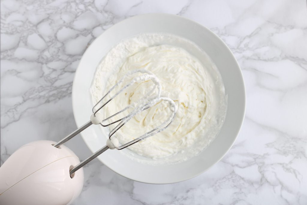 et montez avec un fouet électrique (voir comment réussir la crème fouettée).