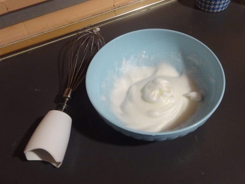 • Une fois montés, ajoutez le sucre glace tamisé et mélangez pour bien amalgamer le tout.