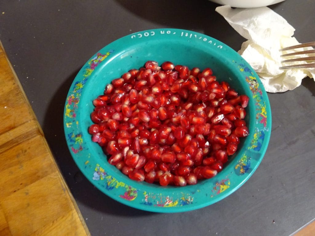 Ajoutez ensuite les olives, les amandes et la grenade au couscous.