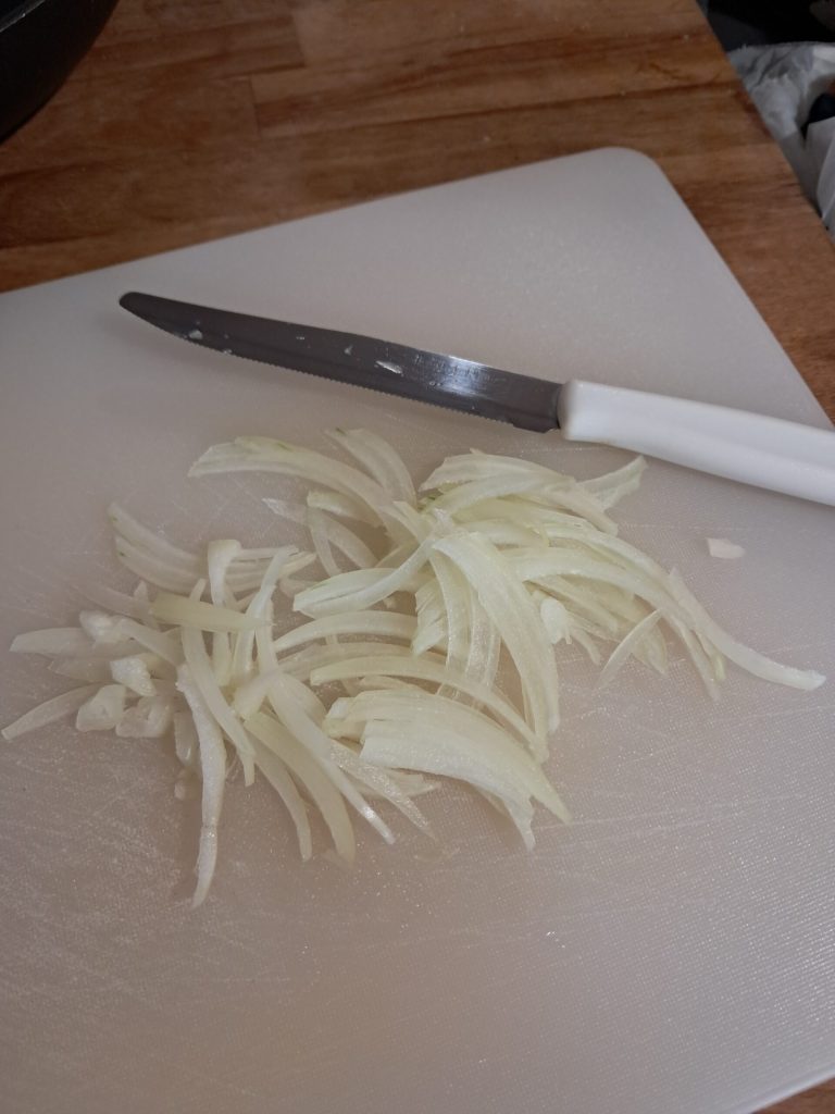 Nettoyez et coupez en julienne l’oignon le plus finement possible.