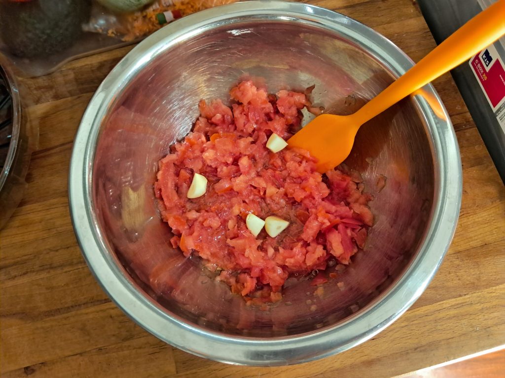 Si vous n’avez pas de hachoir, vous pouvez utiliser un couteau et couper les tomates en petits dés.
