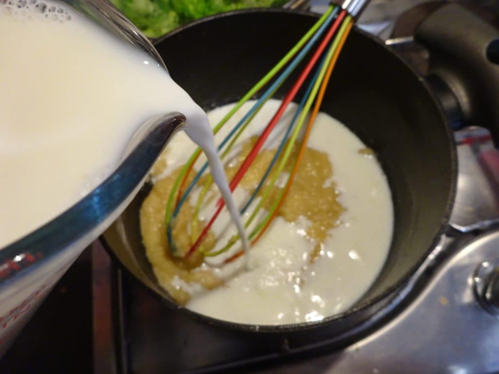Continuez à mélanger avec le fouet jusqu’à ce que la béchamel commence à épaissir.