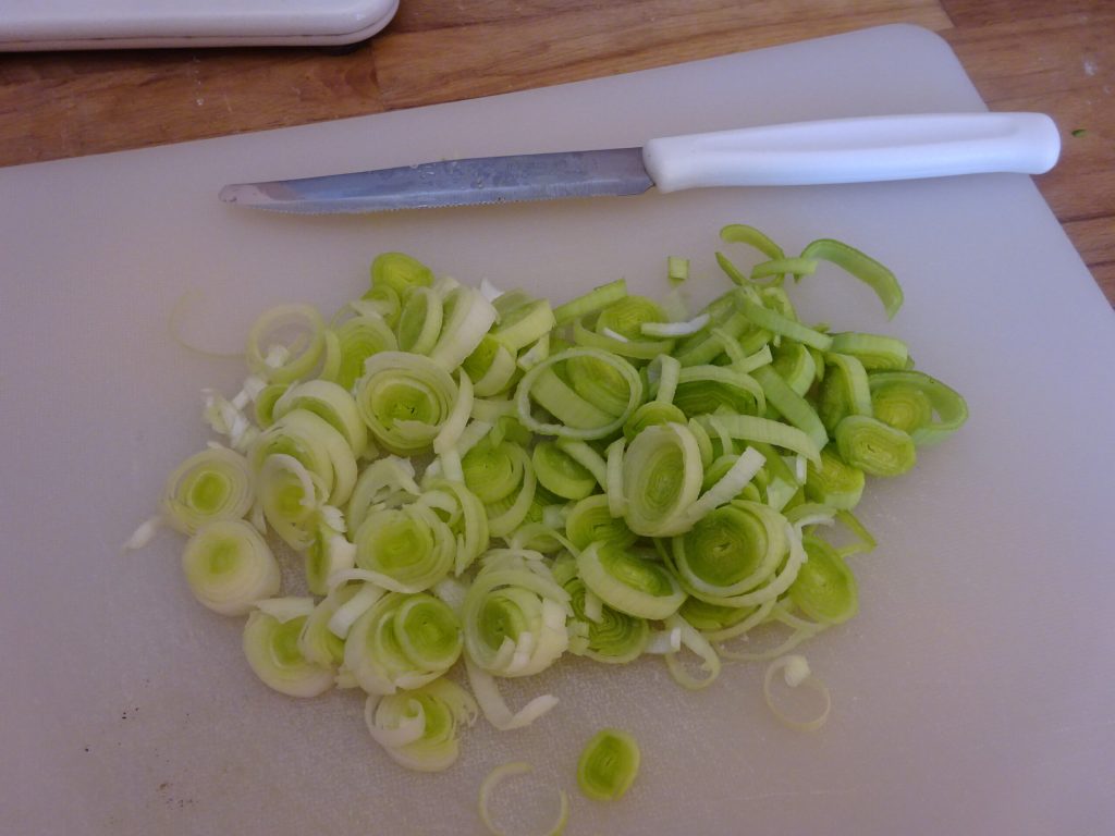 Nettoyez et coupez les poireaux en rondelles assez fines.