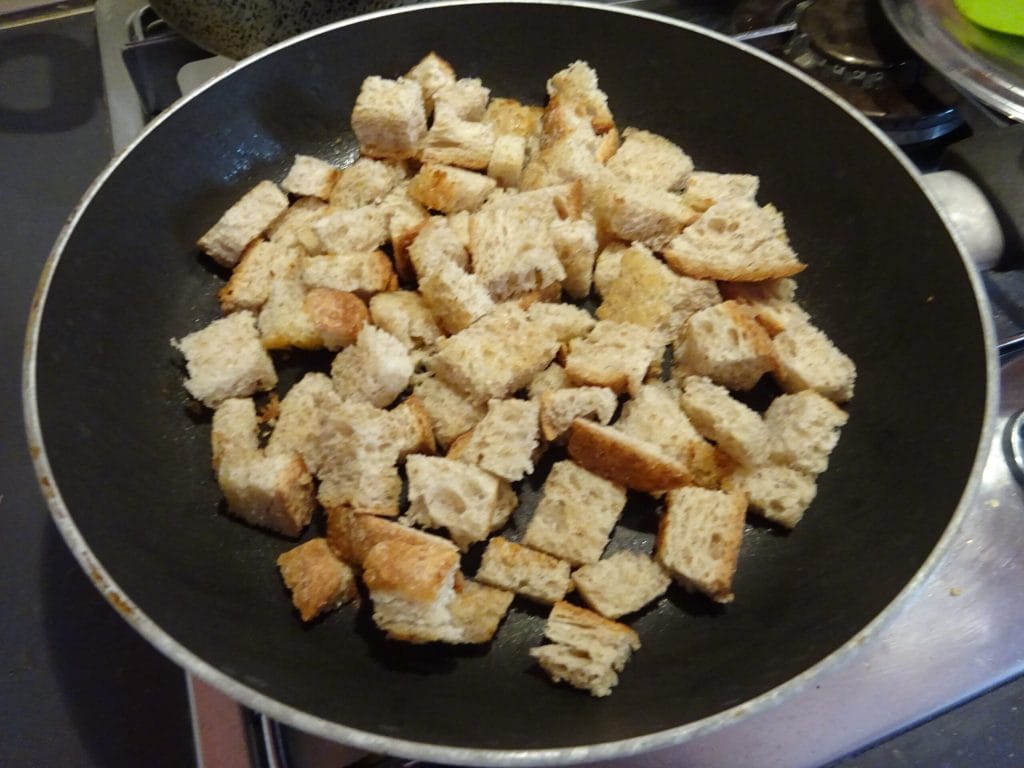 Une fois le pain grillé, versez-le dans le bol avec les légumes.