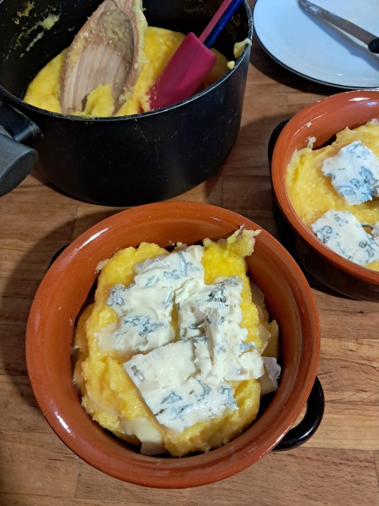 Couvrez avec un peu plus de polenta et ajoutez ensuite une couche de gorgonzola.