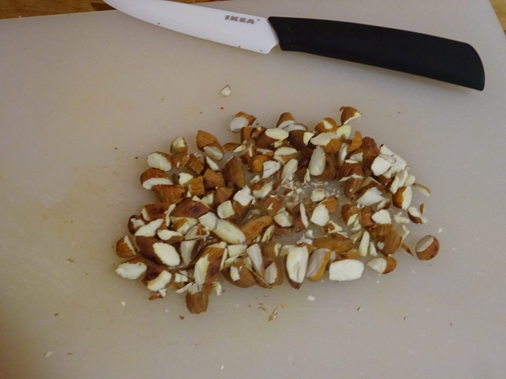 Coupez grossièrement les amandes grillées et disposez-les ensuite sur la salade.