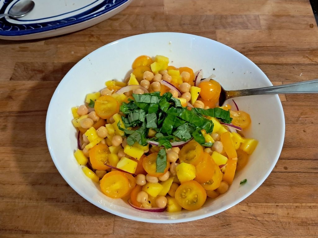 Et voilà… la salade de pois chiches et mangue est prête à être servie.