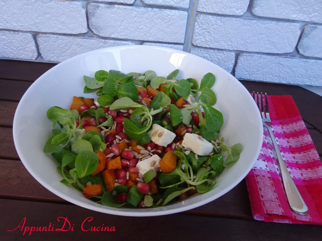 Salade de potiron et grenade, un accompagnement ou plat principal savoureux, léger et frais. Se prépare rapidement avec des ingrédients simples mais savoureux.