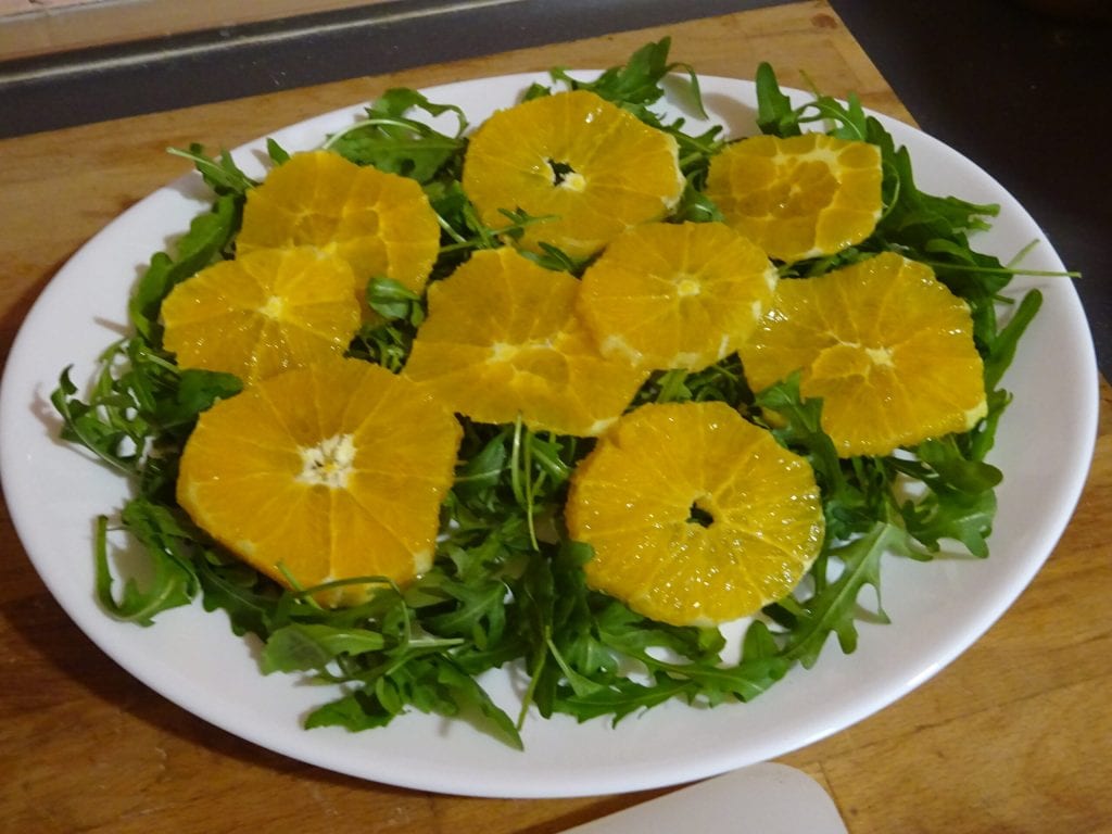 Et voilà… votre salade de roquette et d’orange est prête à être servie.