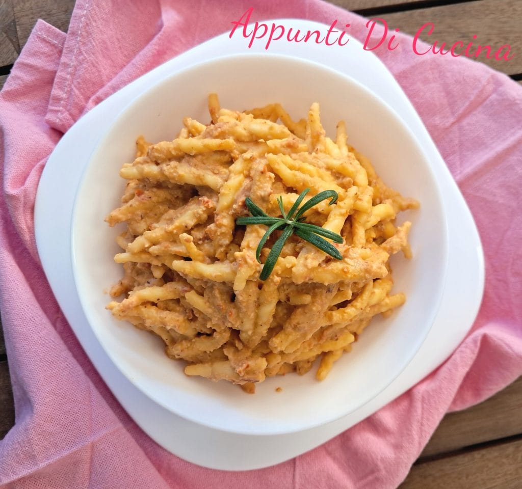 Trofie au pesto de fruits secs, une pâte savoureuse et délicieuse grâce non seulement aux fruits secs mais aussi aux tomates séchées contenues dans le pesto. Super rapide à préparer, juste le temps de cuisson des trofie, un bon mélange dans la poêle et vous aurez un excellent premier plat à servir également aux amis et parents végétaliens. Si tu aimes les fruits secs dans les plats de pâtes